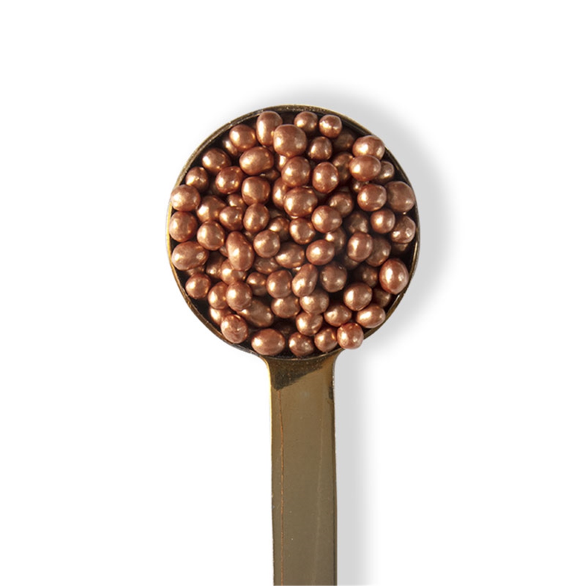 Bakır Renkli Pirinç Patlağı Draje beyaz çikolata (%86), şeker , kakao yağı,