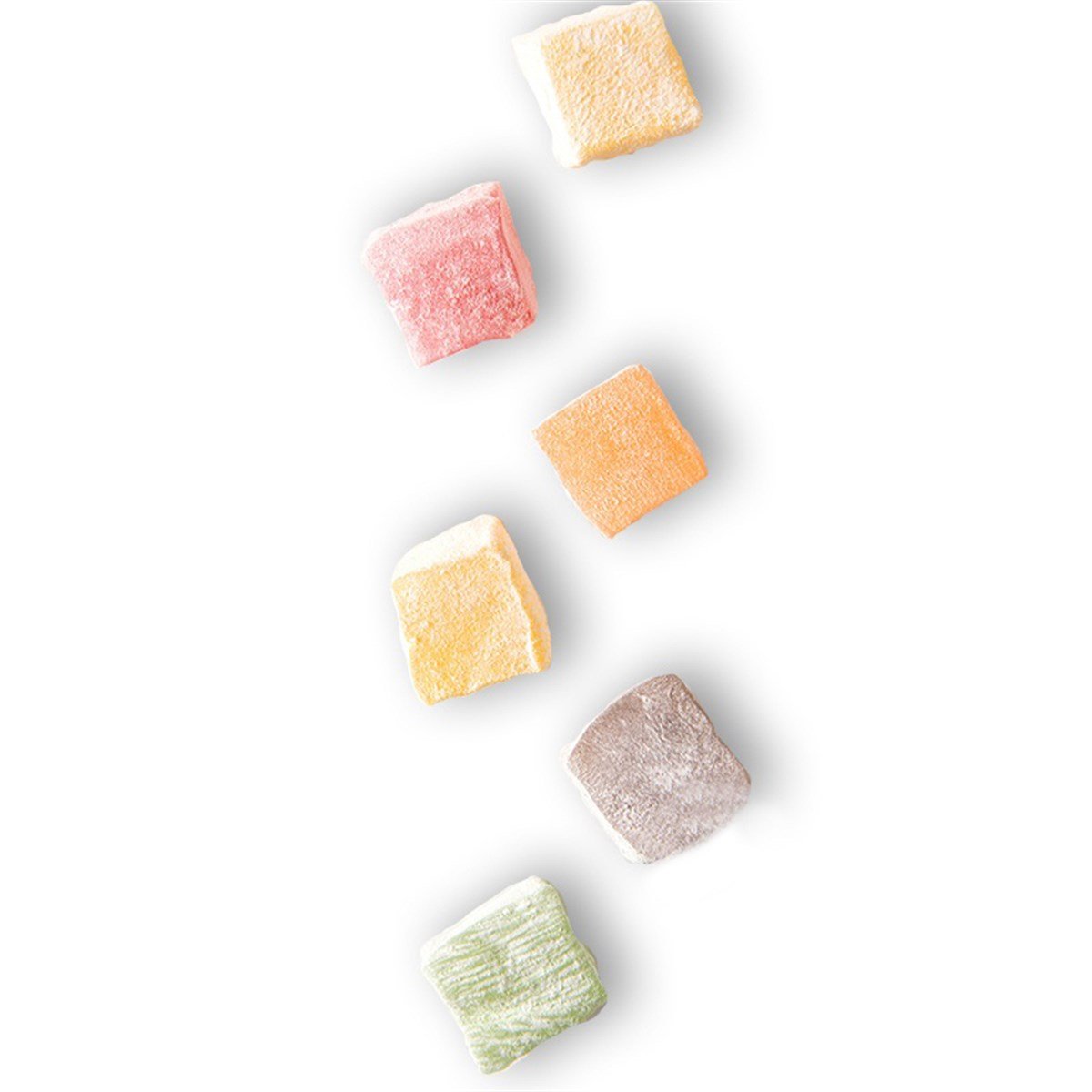 Şeker, su, mısır nişastası, asitliği düzenleyici: sitrik asit (E3330), doğala özdeş meyve aromalı(limon,portakal,çilek,elma,böğürtlen). Renklendiriciler:(E-102,E-110,E-124,E-102/E-133,E-163).